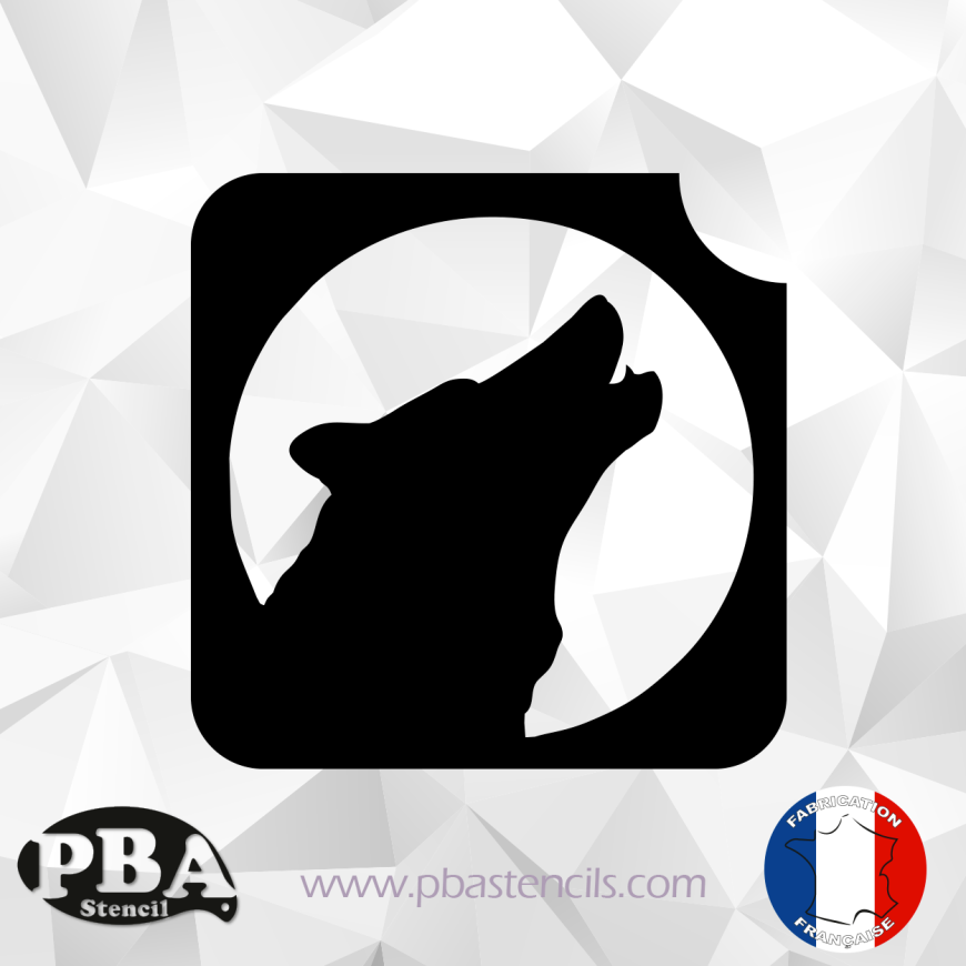 Pochoir adhésif en vinyle souple de 55 x 55 mm design Loup n°3 en 1, 5, ou 10 exemplaires